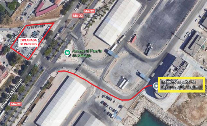 En coche: no es posible el acceso al puerto en vehículo privado. No obstante, cerca del acceso al Muelle 9, donde se encuentra el Centro, hay una explanada de aparcamiento (ver esquema).